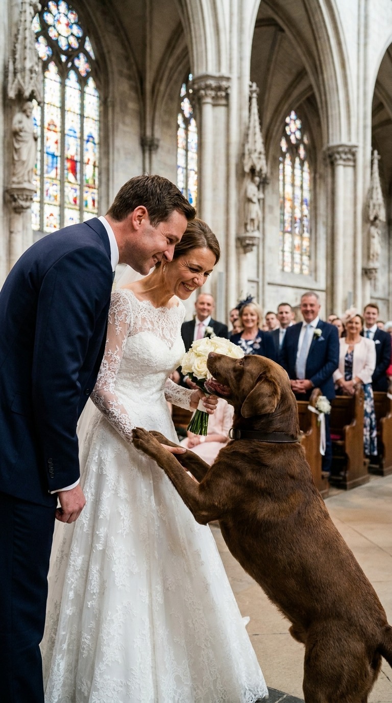 Il cane si irrigidì improvvisamente, balzò in piedi e abbaiò forte. Inizialmente, tutti pensarono che fosse solo spaventato o troppo eccitato. La sposa cercò di calmarlo chiamandolo a bassa voce, chinandosi e accarezzandolo.